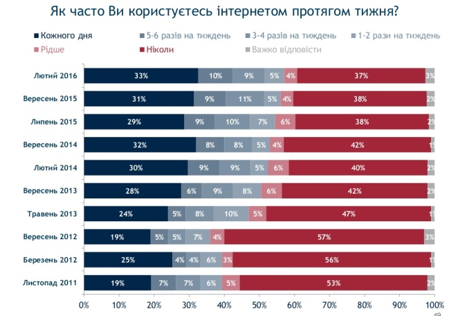 48% украинцев получают информацию о политике из интернета Субота, 16 Квітня, 2016 chesnavlada.org Миколаїв 88% украинцев получали информацию политического характера из каналов украинского телевидения в феврале этого года.