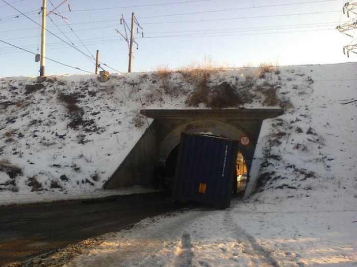 В тоннеле под железнодорожной насыпью в районе Балковской улицы, известном как “Глухой мост”, застрял большегрузный автомобиль.